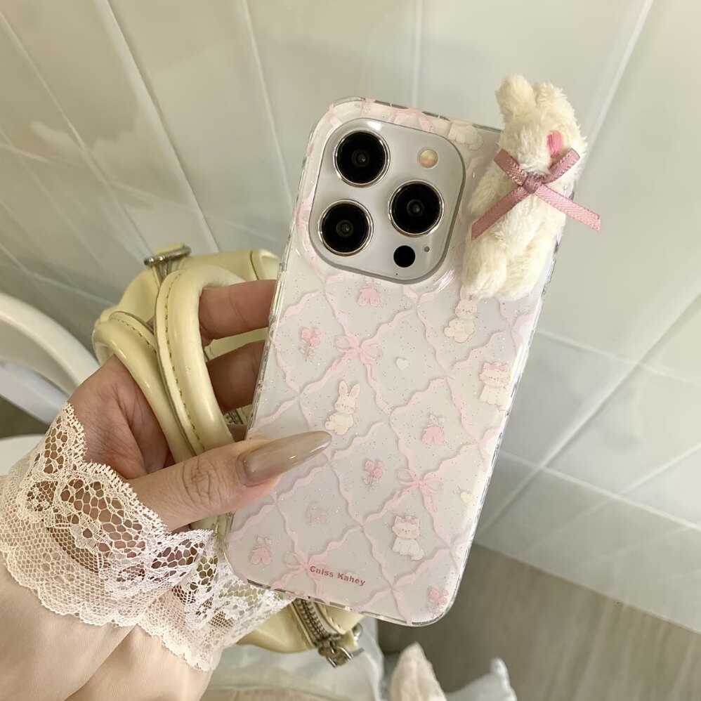 📚 粉格兔子适用iPhone16pro手机壳苹果15promax创意毛绒白兔17华为mate60pro新款p70vivo小米15红米k80荣耀oppo