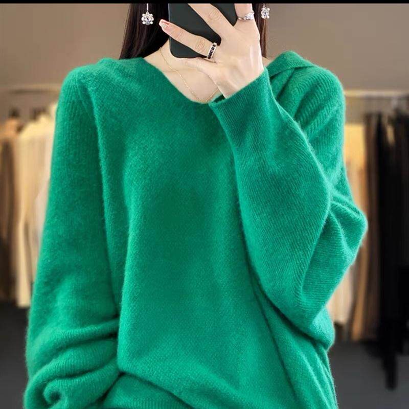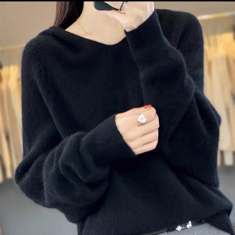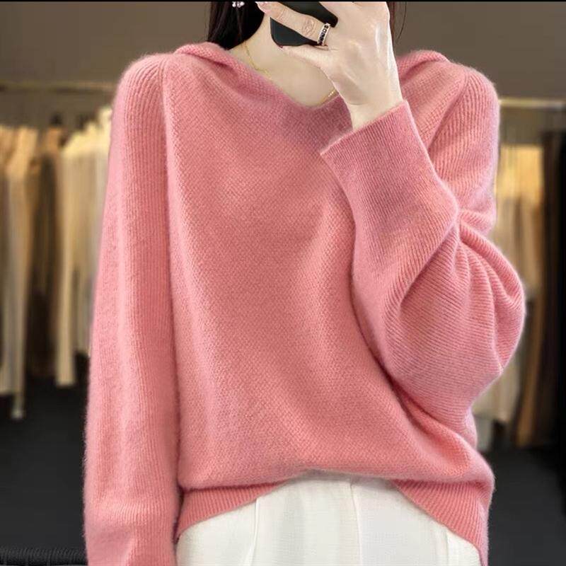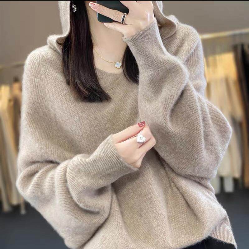 📚 MT8173纯羊毛100%女连帽卫衣2023年秋冬新款蝙蝠袖带帽针织羊毛衫