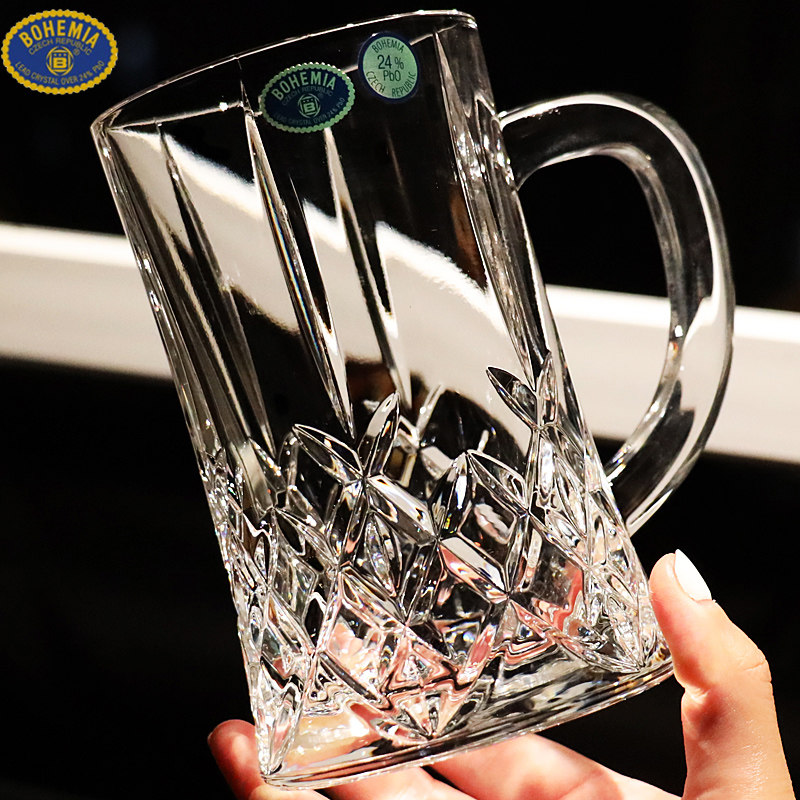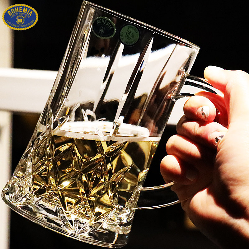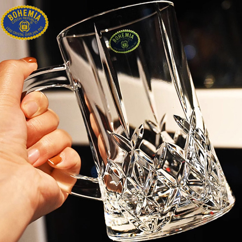 📚 捷克BOHEMIA进口水晶玻璃带把大容量精酿扎啤刻花小麦杯啤酒杯子