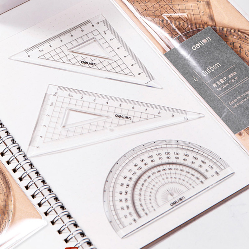 📚 得力文具72004小学生套尺直尺三角尺子量角器多规格透明套装4件套
