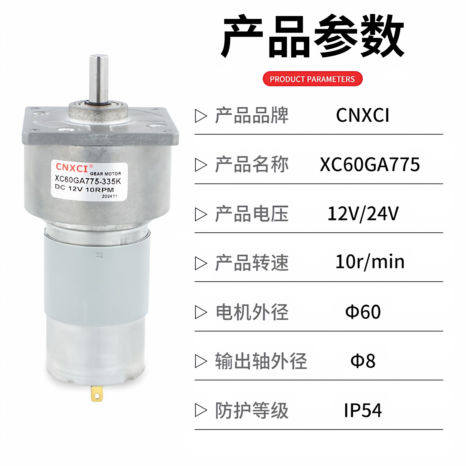 📚 60GA775直流减速电机低速大扭力矩12V24伏调速慢速齿轮小微型马达