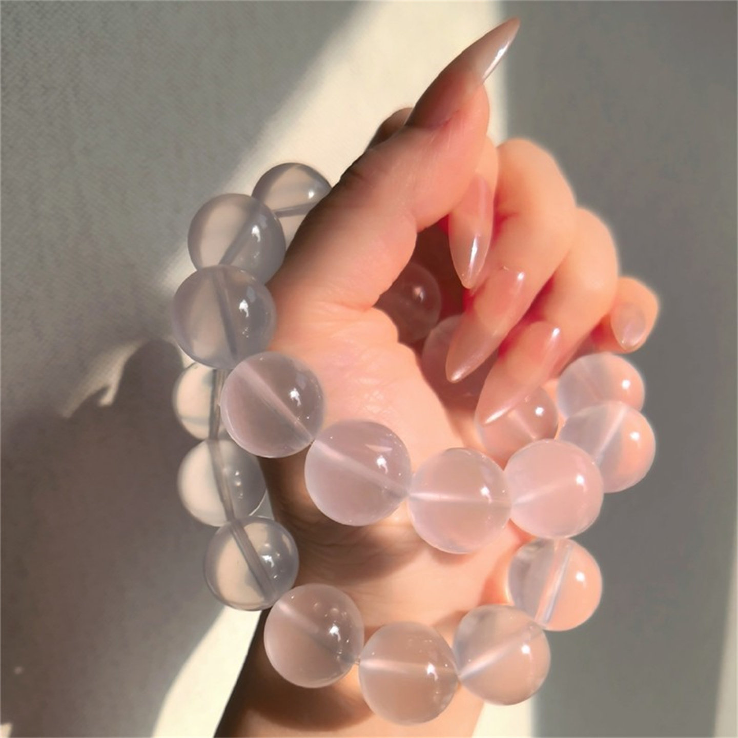 📚 巴西天然奶白晶手串冰透温柔奶油体高品质15mm白水晶夏季显白手链
