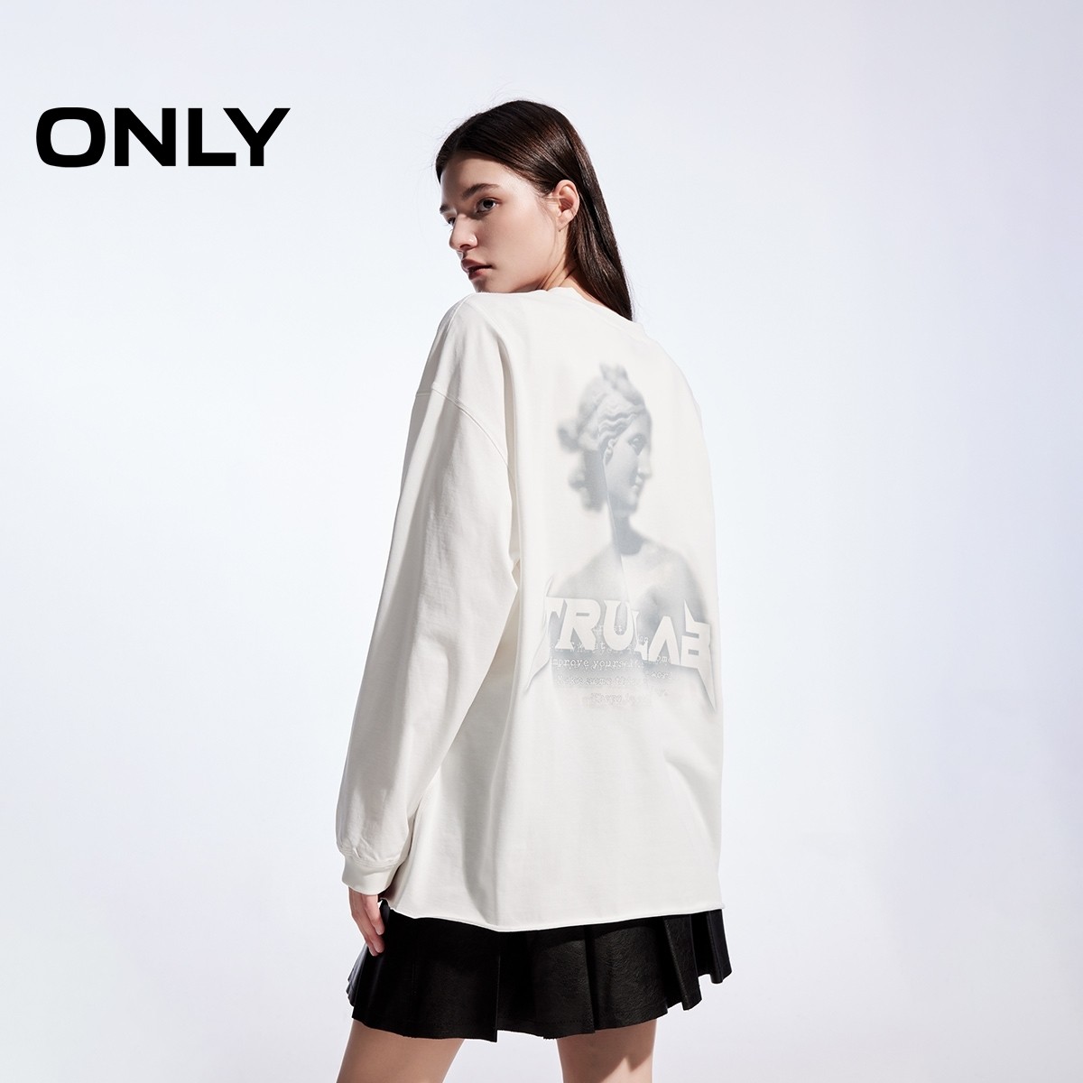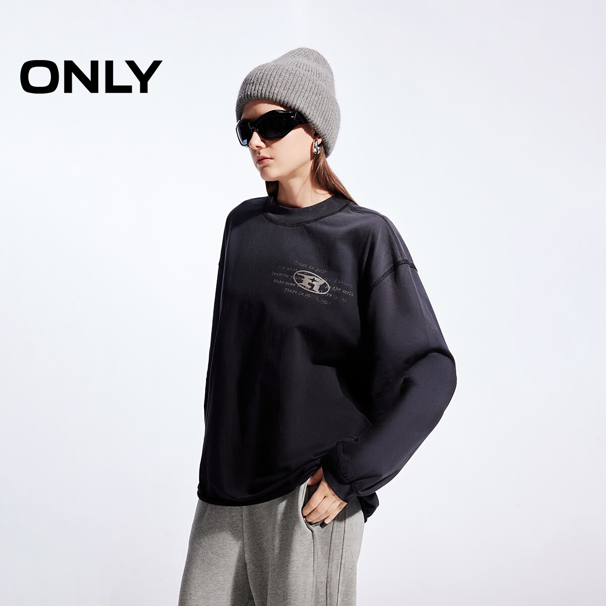 📚 ONLY2026春季新款上衣纯棉休闲字母印花宽松圆领长袖上衣T恤女