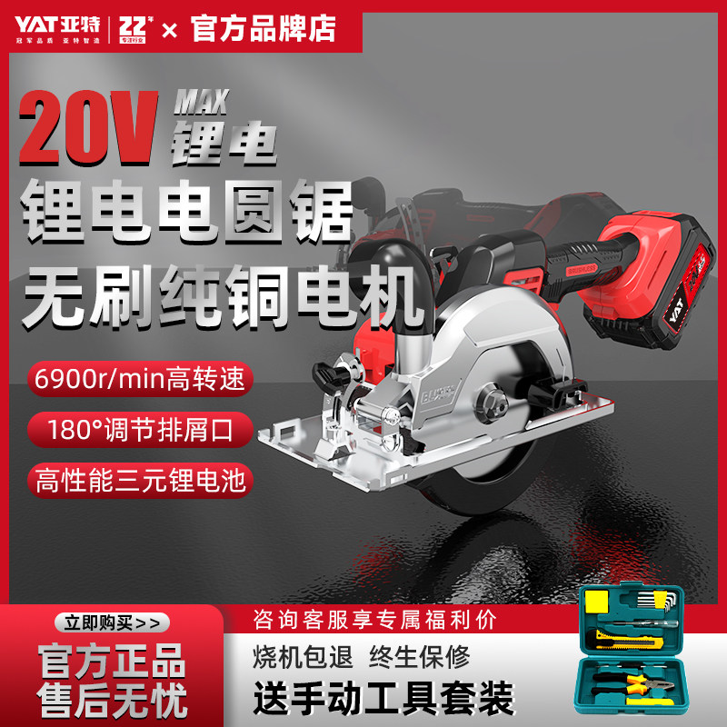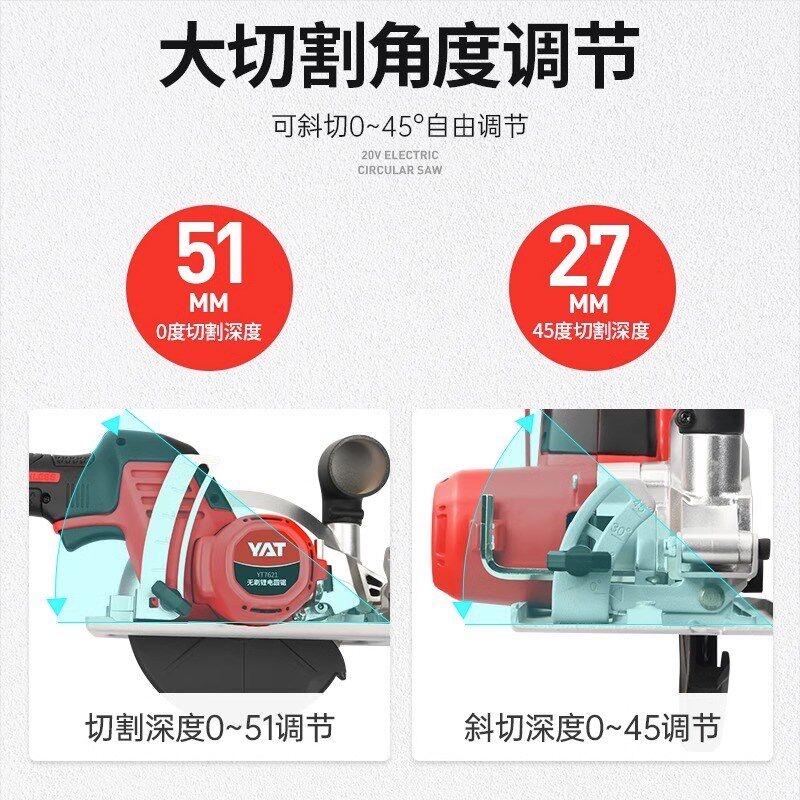 📚 YAT亚特 YT7621 20V 850W 无刷锂电圆锯 木工专用切割机