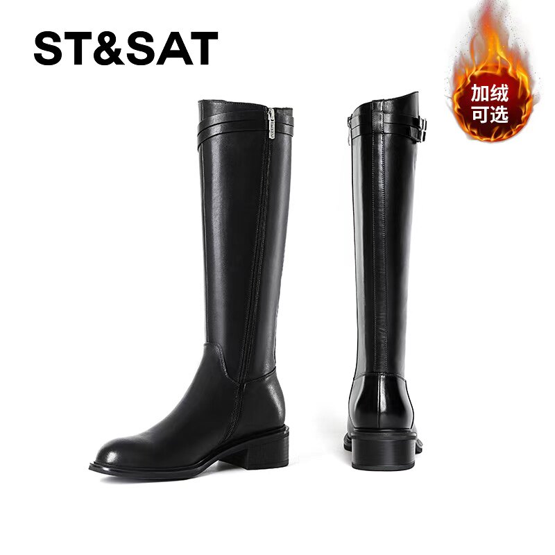 📚 星期六加绒英伦长筒靴女2025秋冬粗跟圆头显瘦高不过膝全牛皮长靴