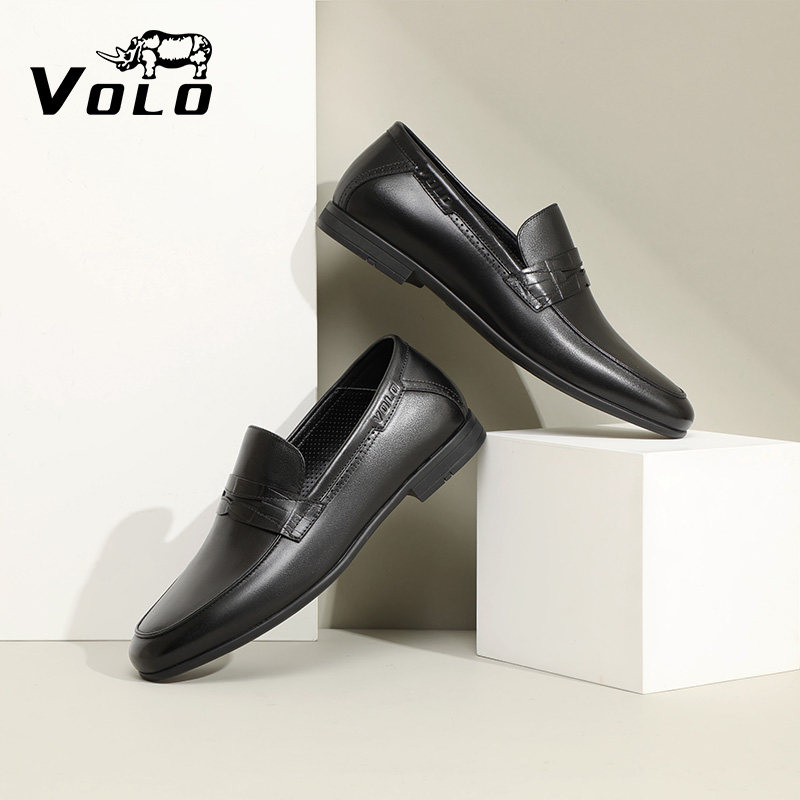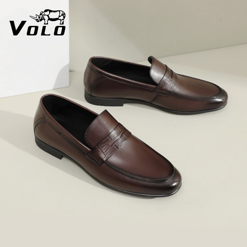 📚 【断码特价】VOLO犀牛男士正装商务皮鞋男款真皮正品一脚蹬爸爸鞋