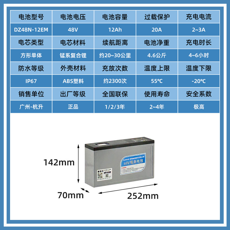 📚 星恒电动车锂电池48V-12Ah服务电池适合雅迪爱玛小刀台铃原装电池