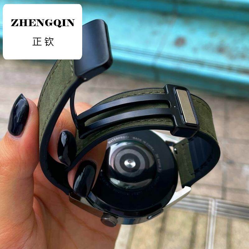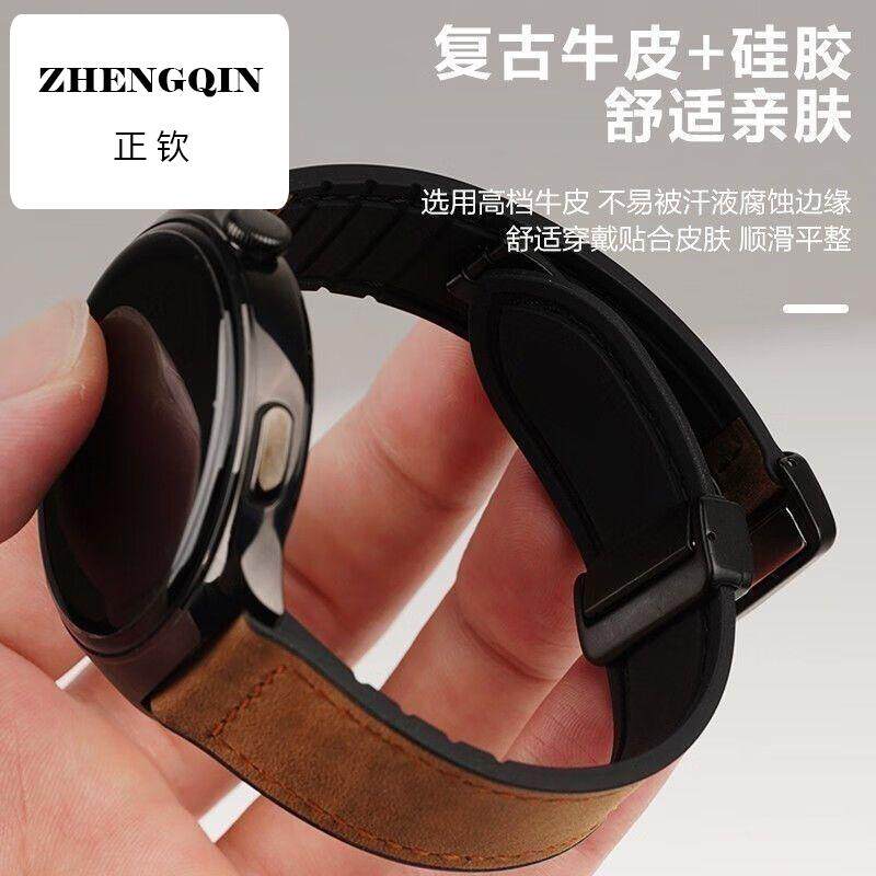 📚 适用华为手表watch3真皮表带GT3智能手表4pro硅胶磁吸金属扣通用