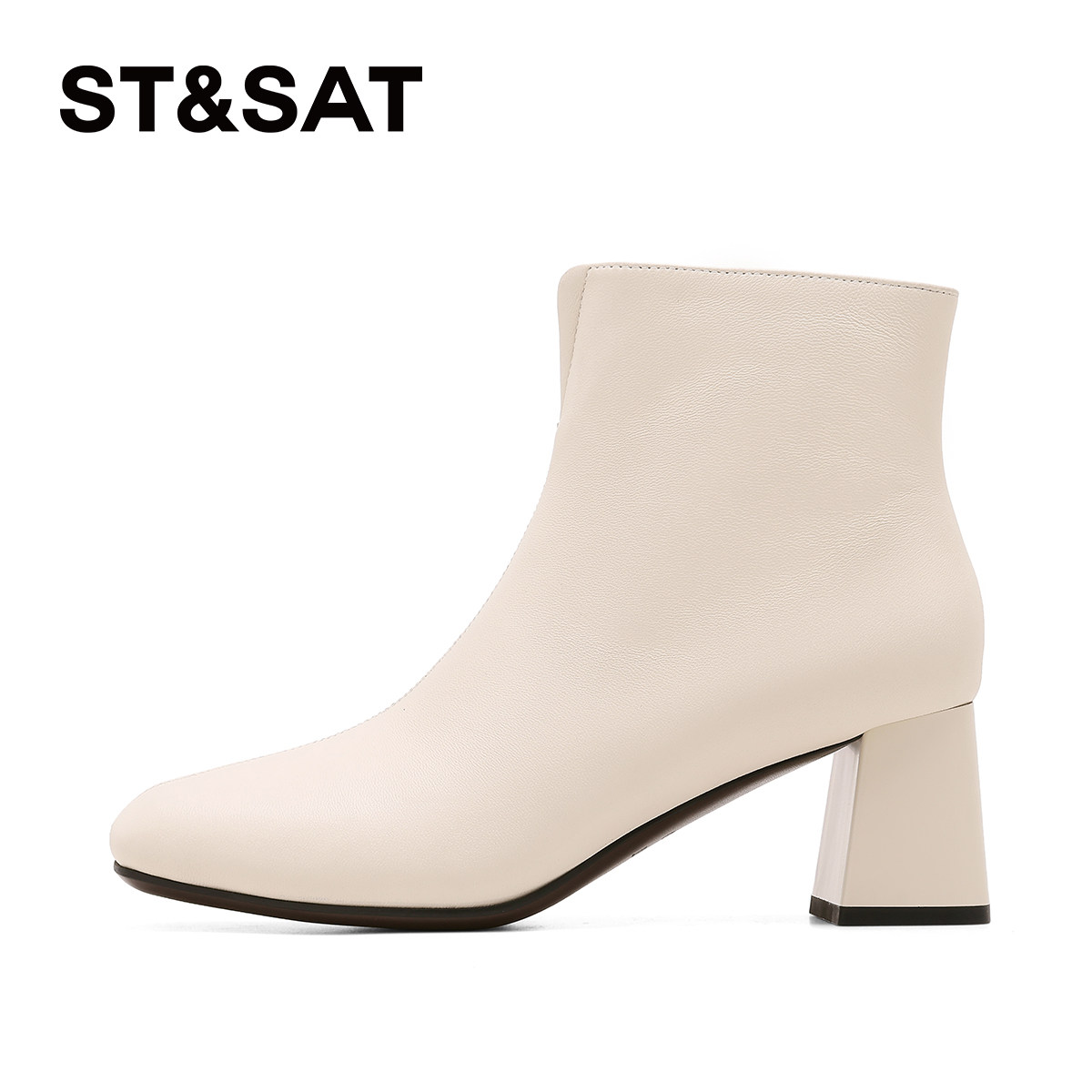 📚 星期六白色高跟短靴女款新款春季加绒裸靴增高马丁靴瘦瘦靴子