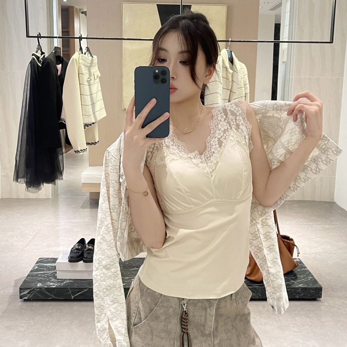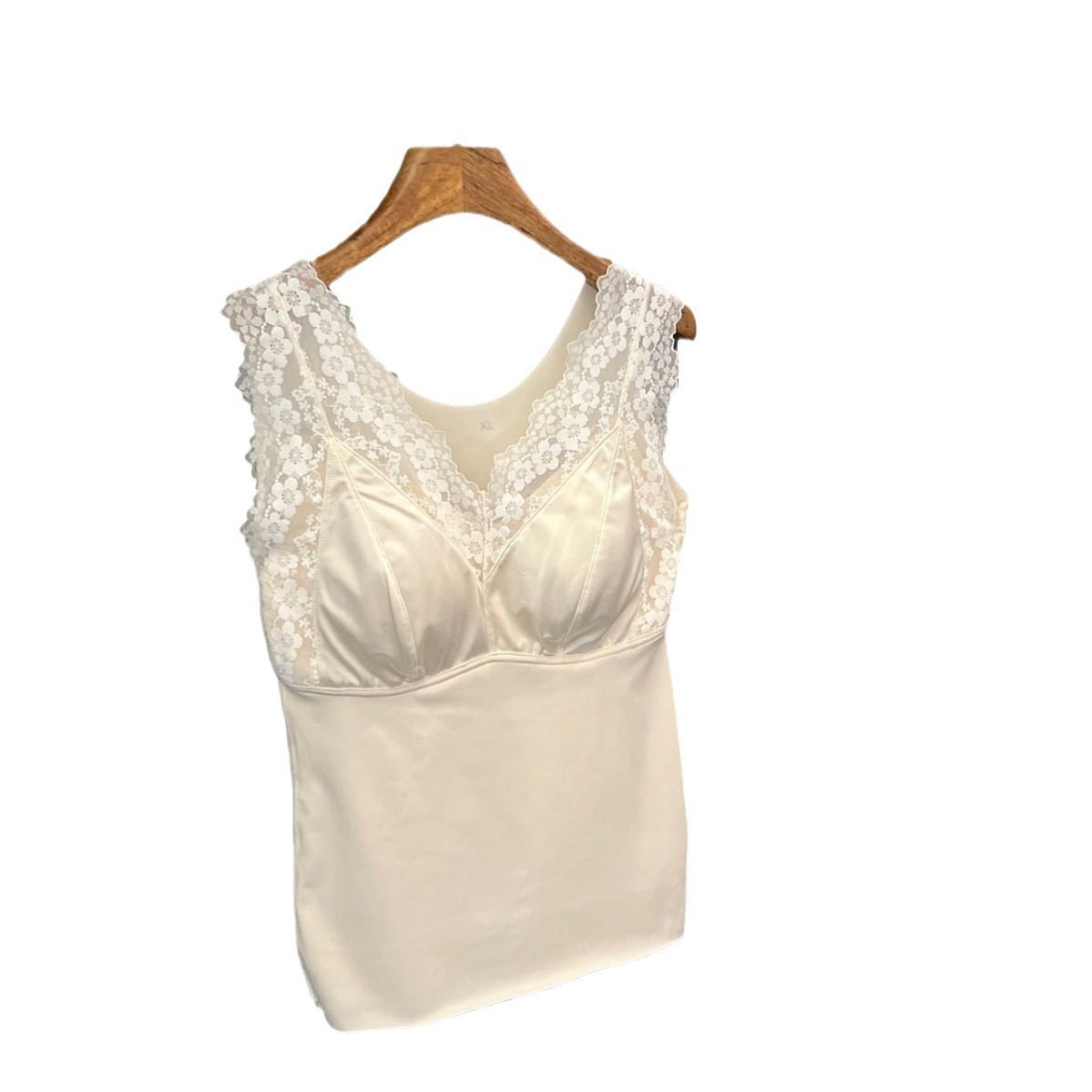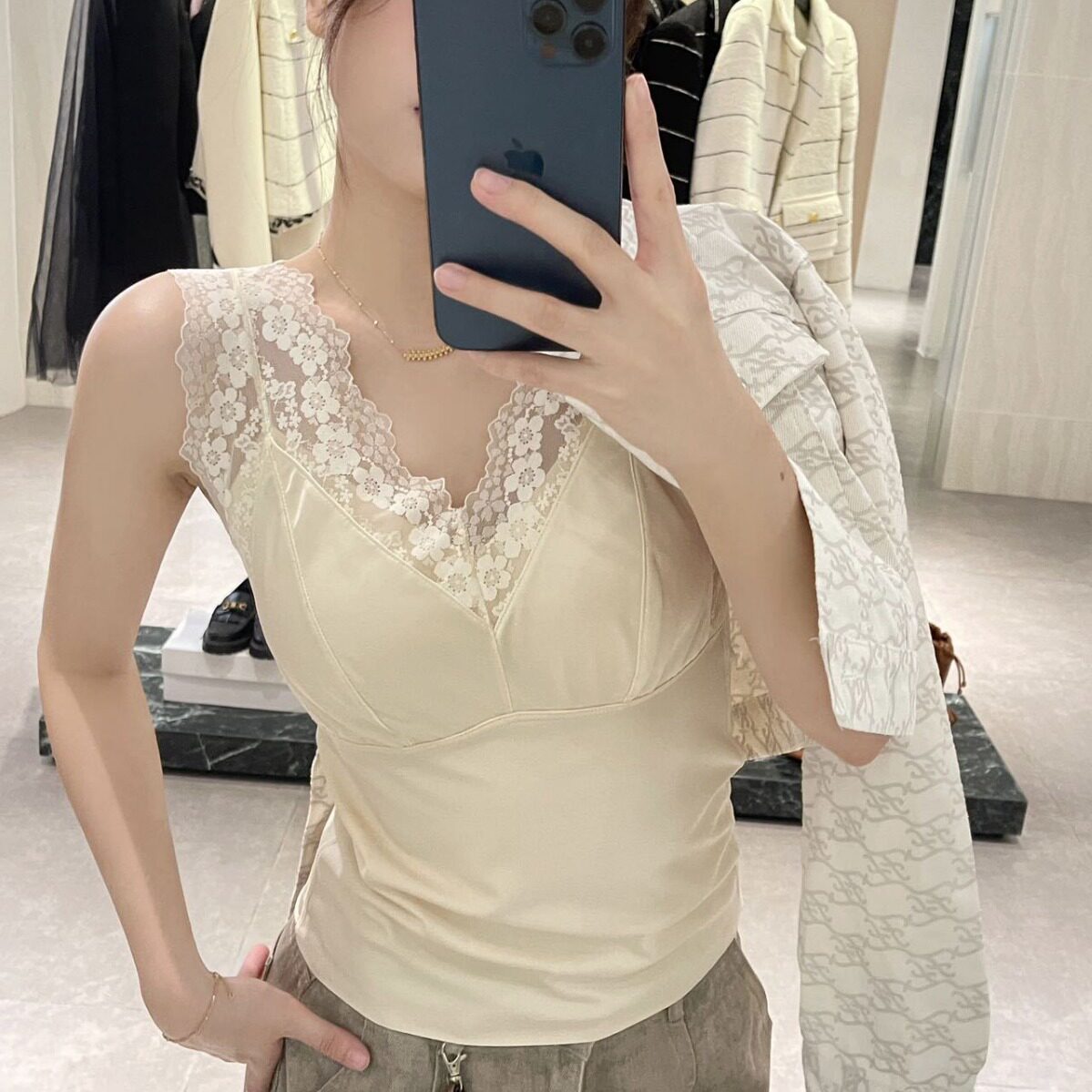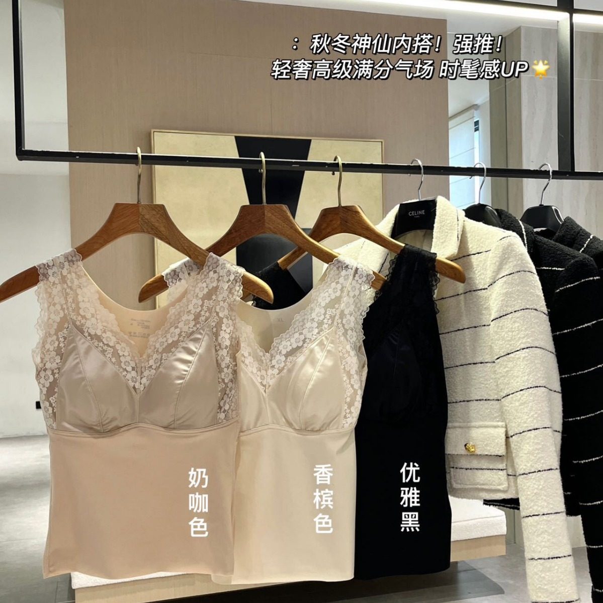 📚 2024年秋冬新款高级感蕾丝缎面磨毛保暖背心固定杯美背066衣架装