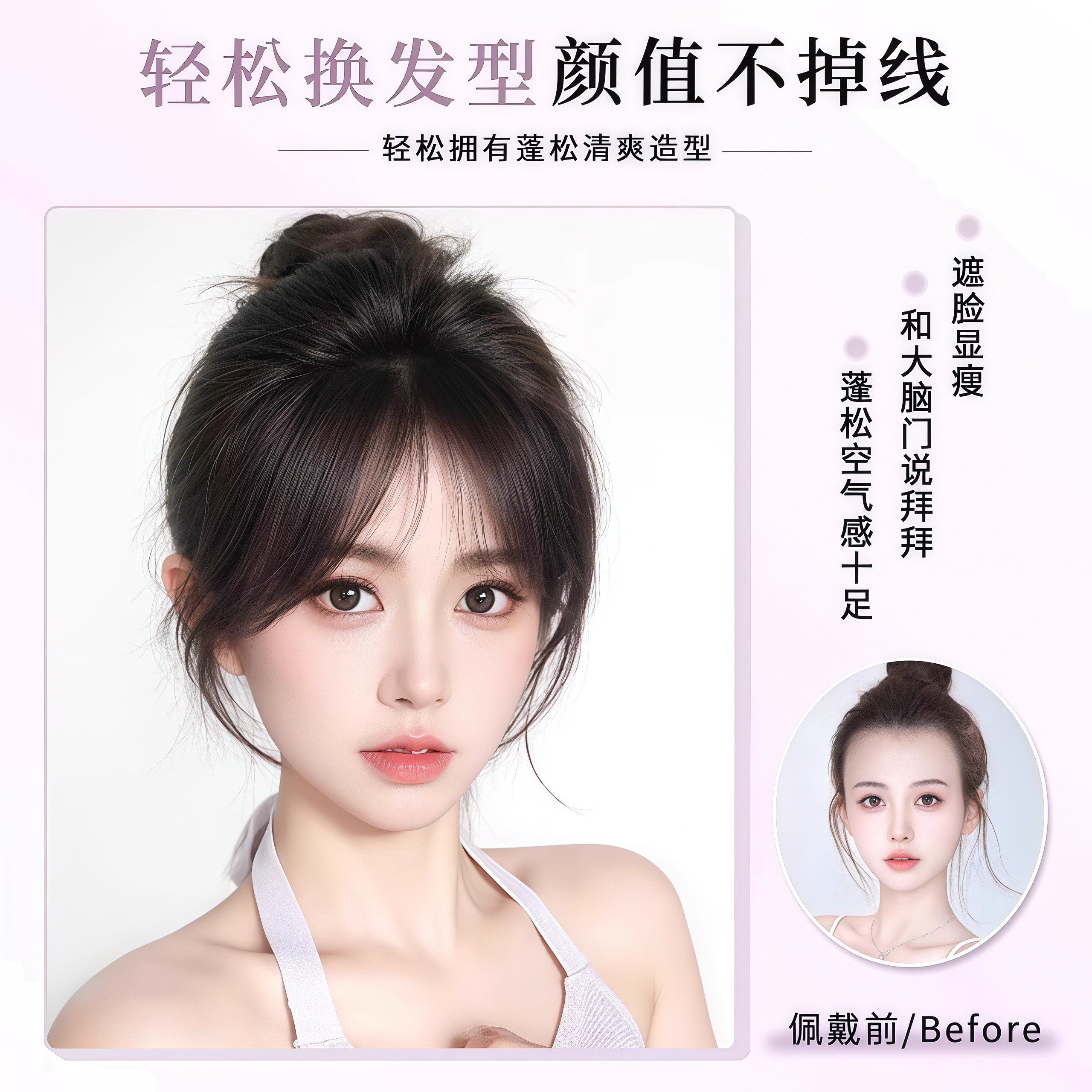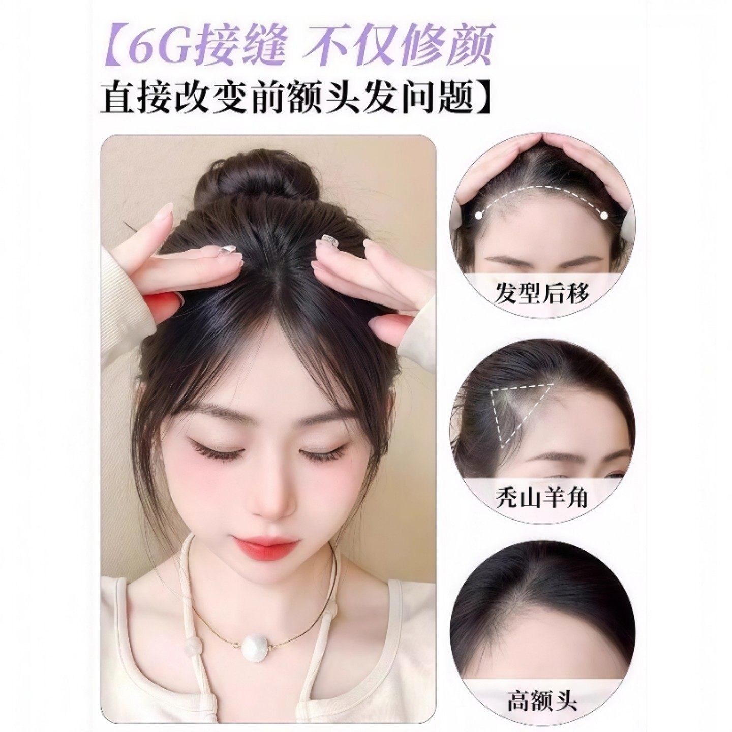 📚 八字刘海假发片女自然前额头顶补发真发轻薄空气蓬松假刘海遮白发