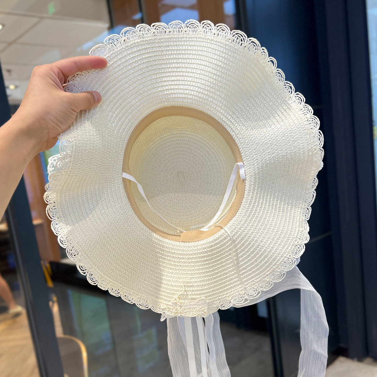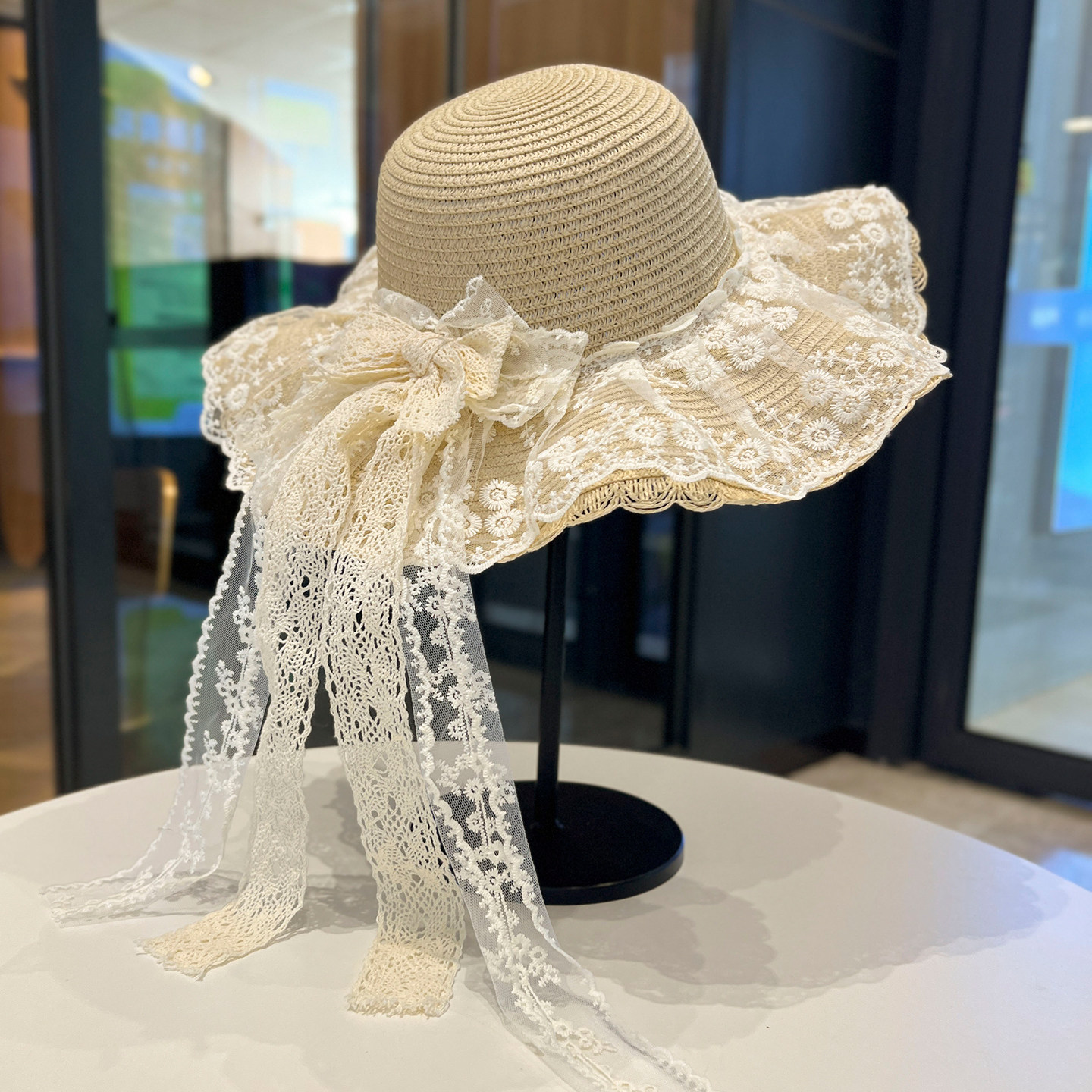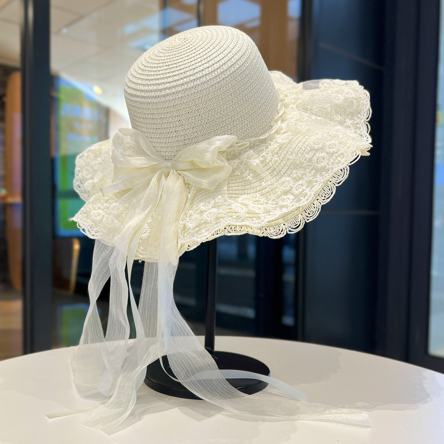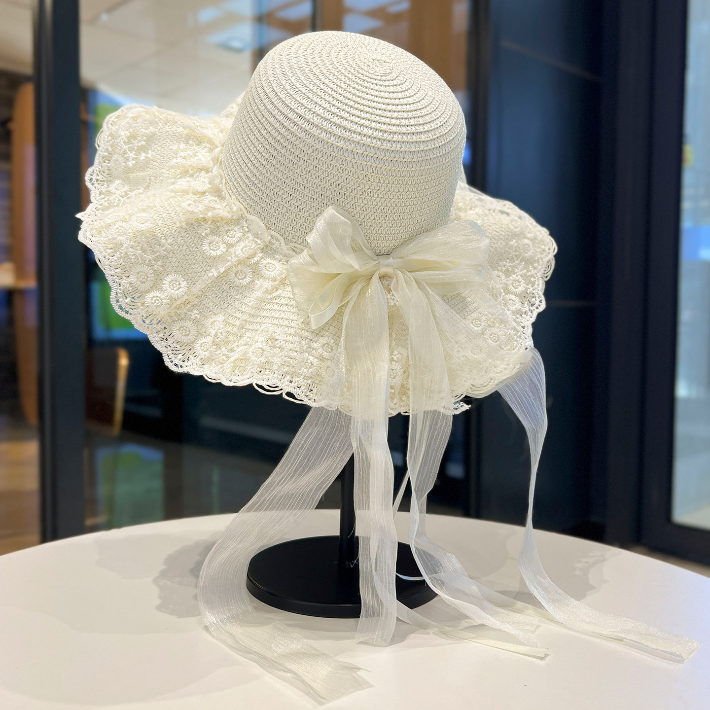 📚 蕾丝蝴蝶结草编帽子女夏季出游海边沙滩遮阳帽户外百搭防晒渔夫帽