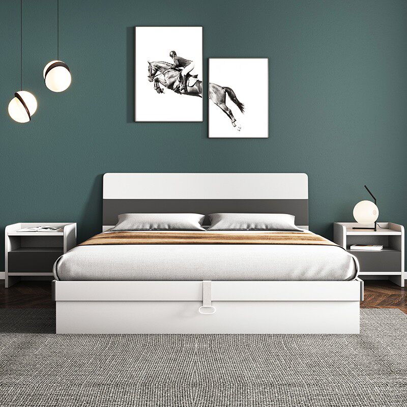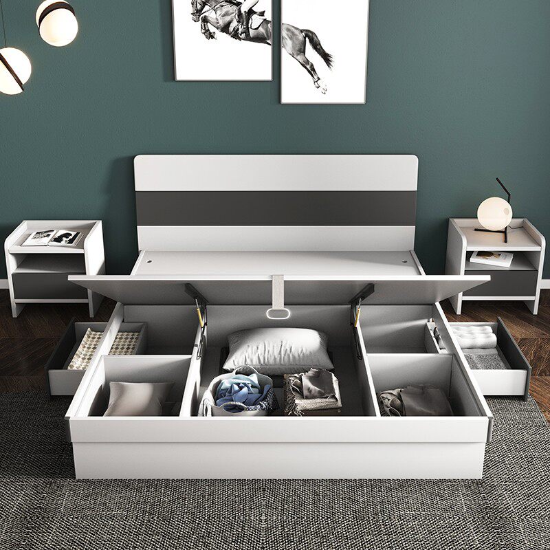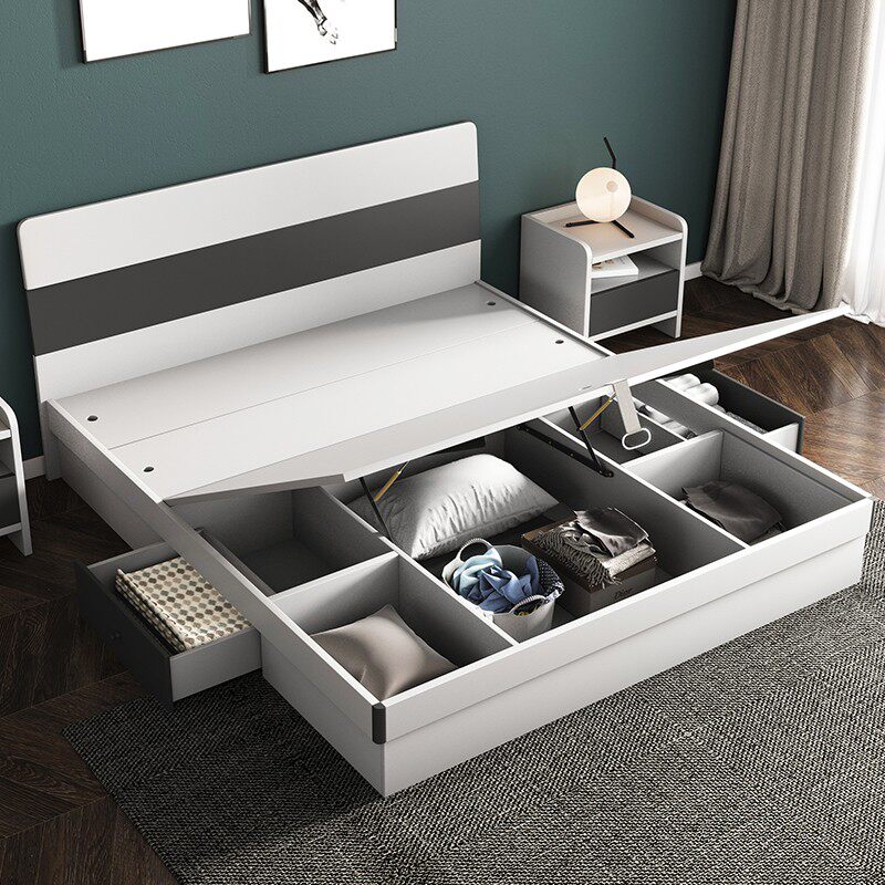 📚 床现代简约小户型1.5米板式床北欧1.8米白色床主卧室高箱储物床