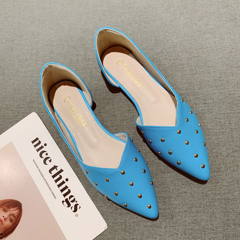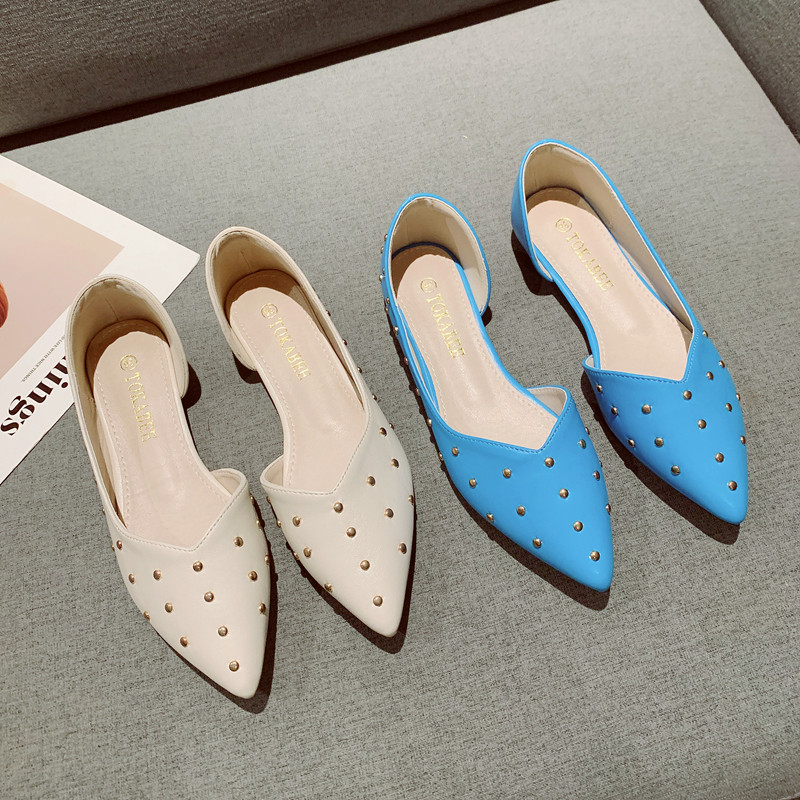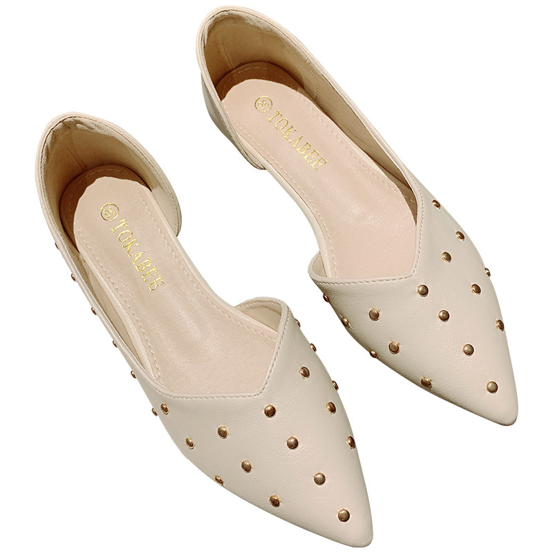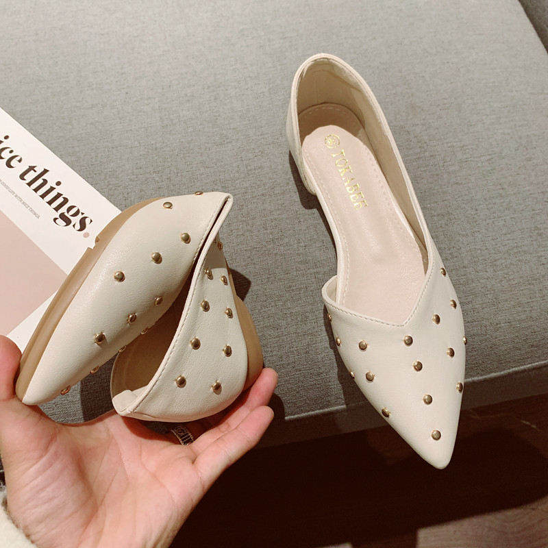 📚 2026早春夏新款性感平底鞋尖头V口侧空铆钉软底女一脚蹬百搭单鞋