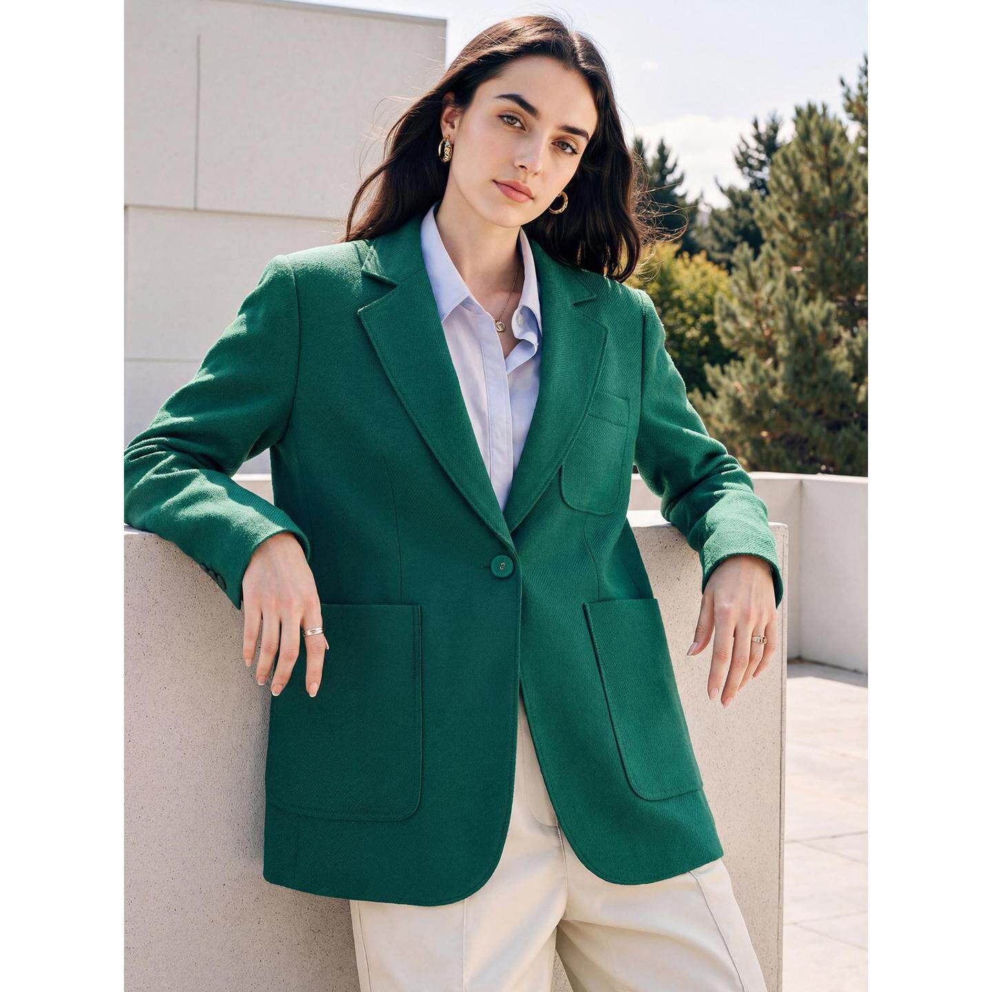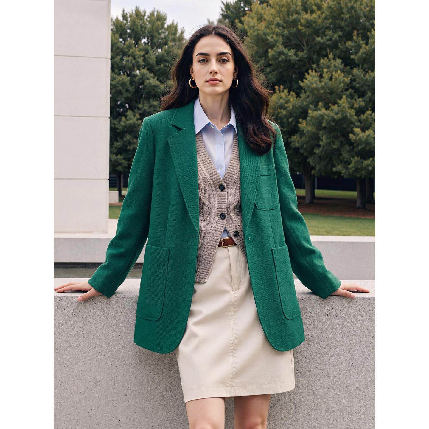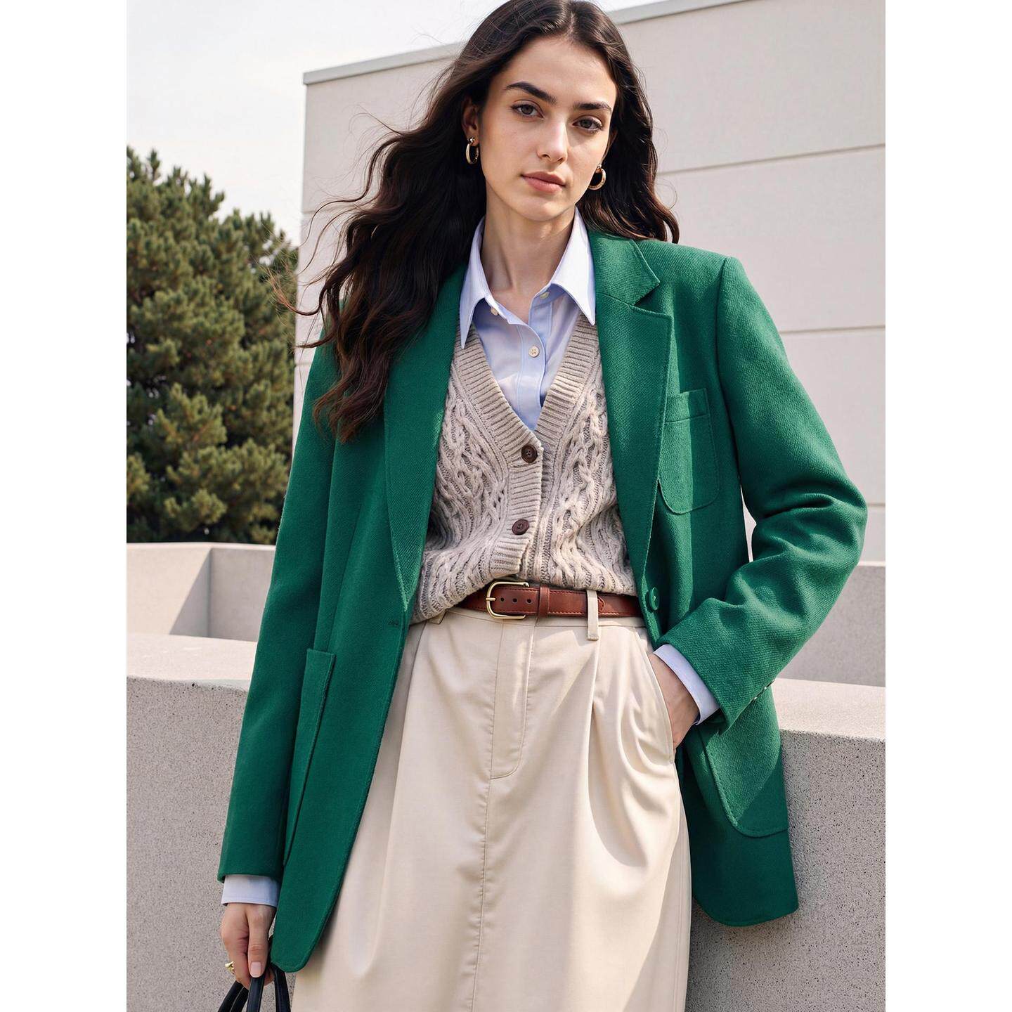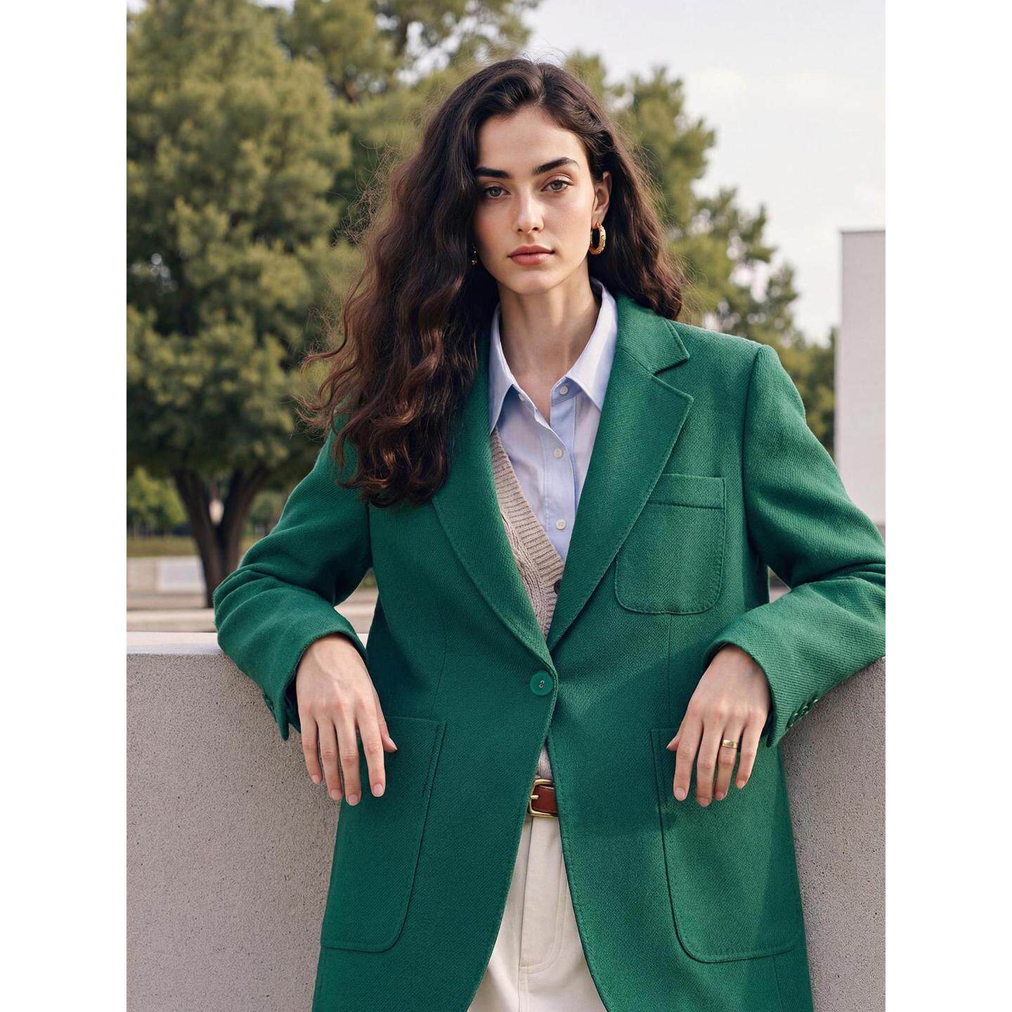 📚 Basic House/百家好绿色西装外套女士2026春季新款羊毛中长款西服