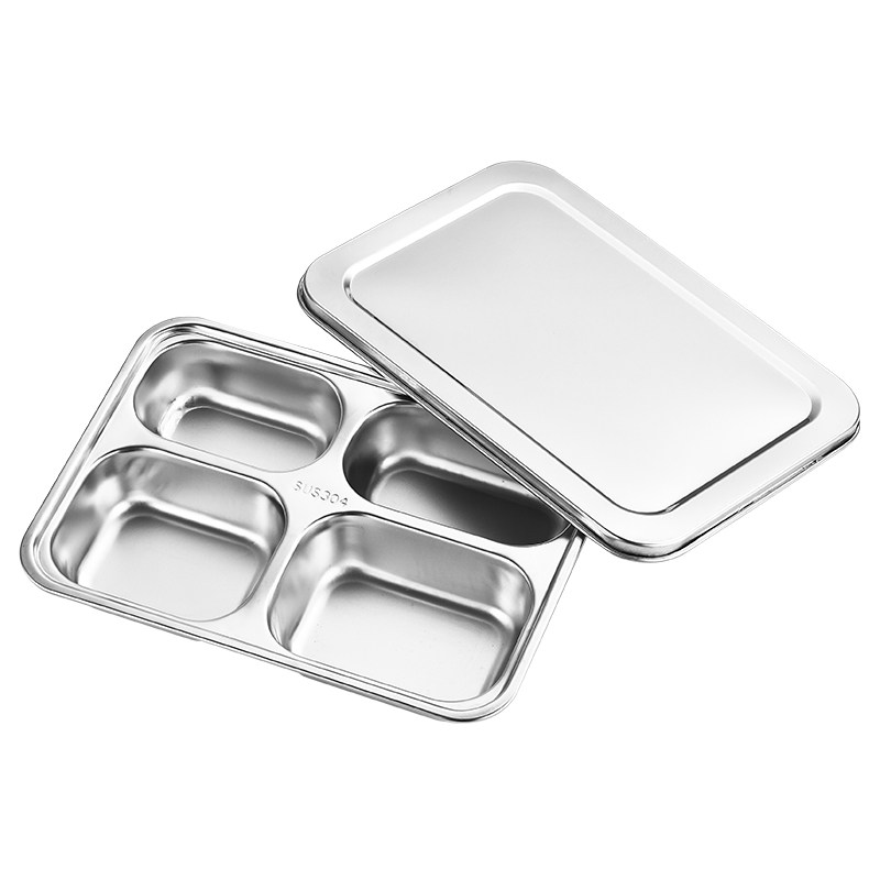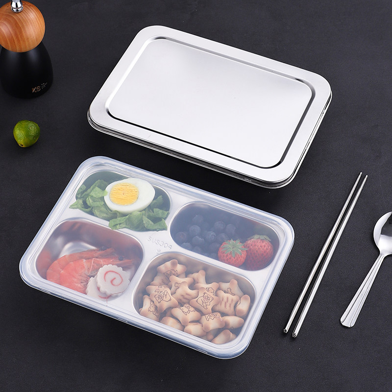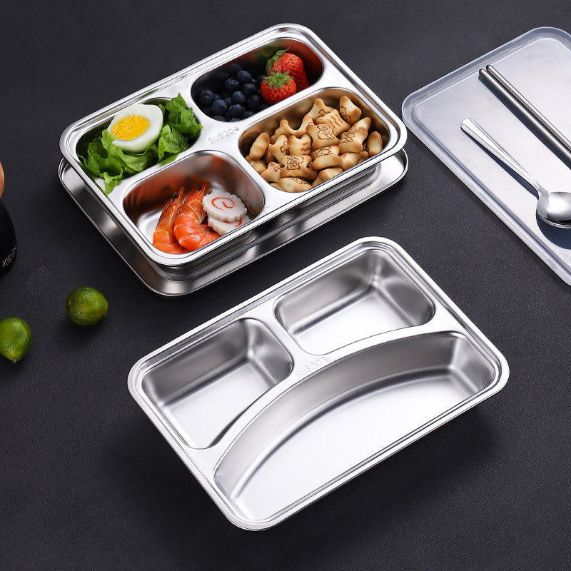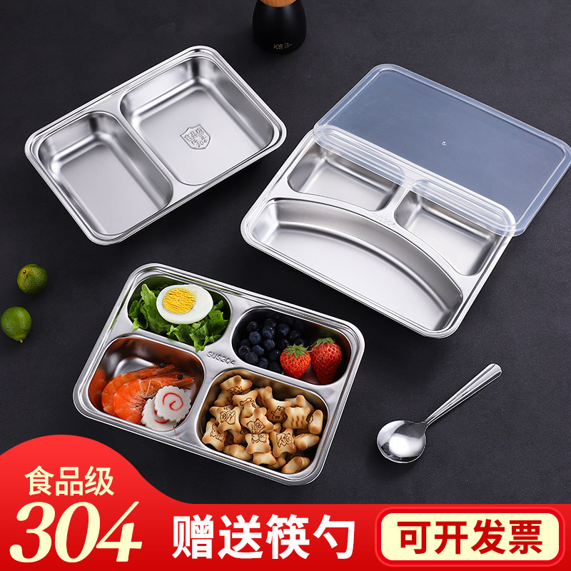 📚 加厚儿童餐盘幼儿园快餐盘分格学生不锈钢304食堂防摔食品级餐具