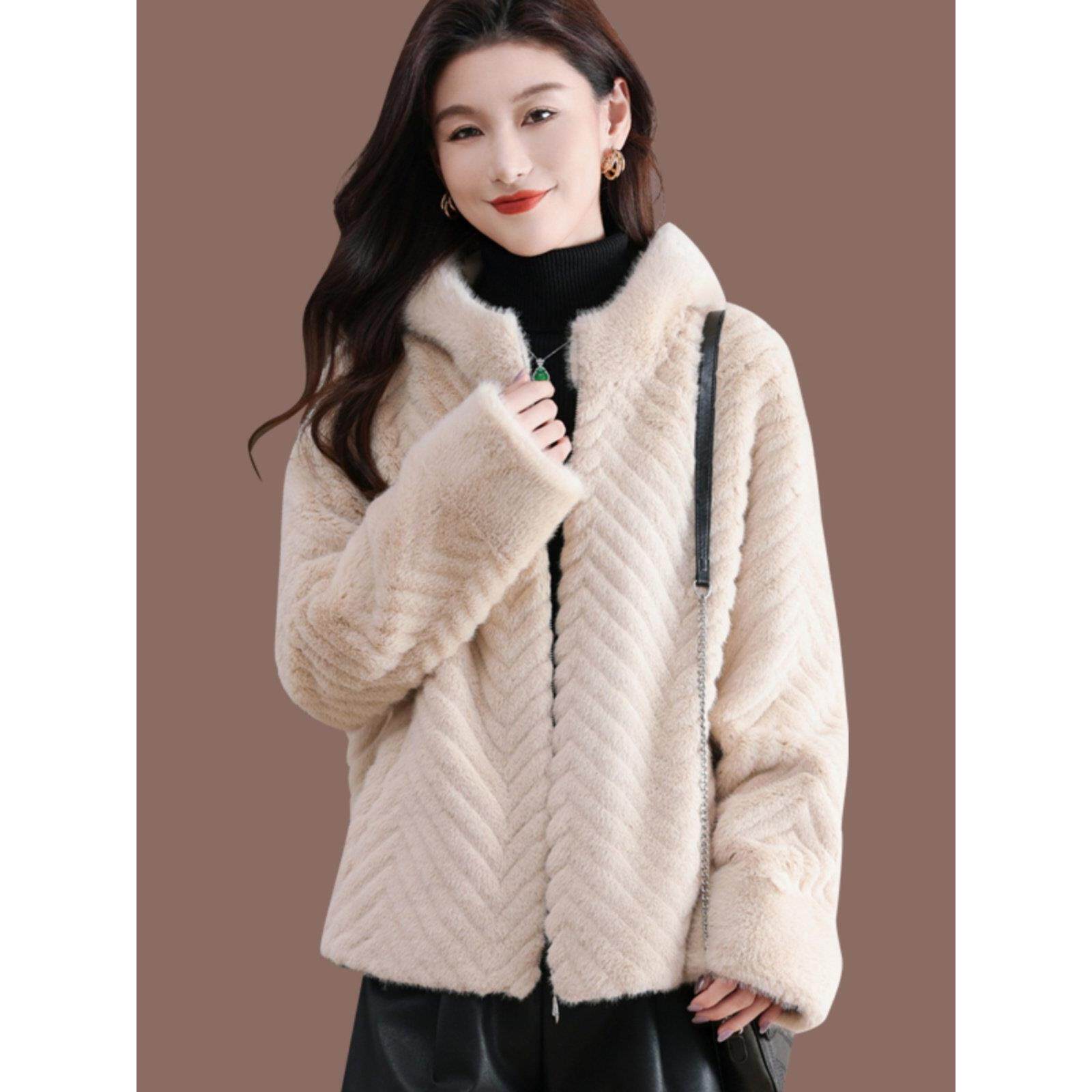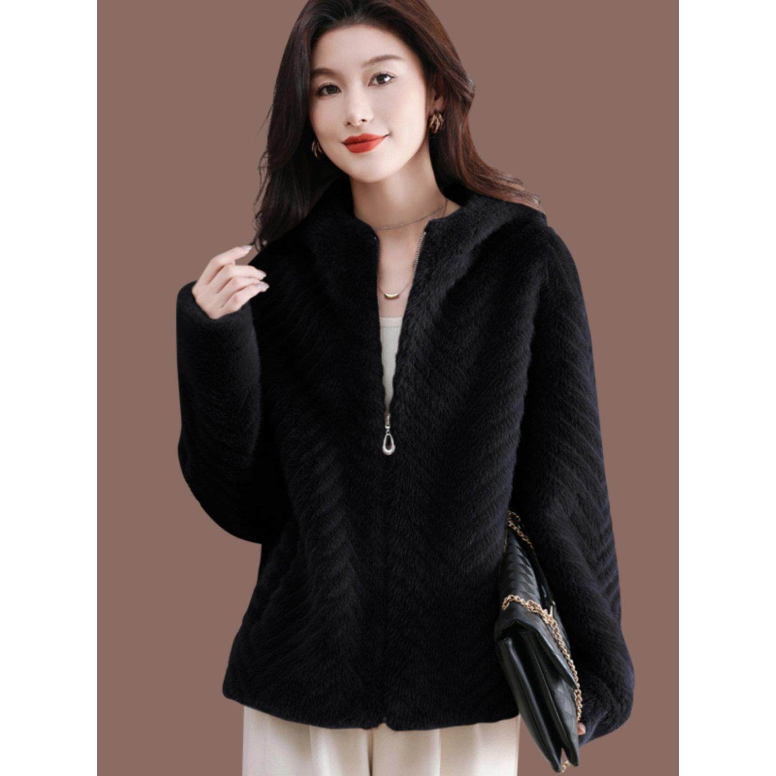 📚 仿皮草毛毛外套女皮毛一体秋冬季2025新款连帽宽松加厚水貂绒开衫