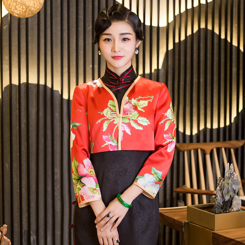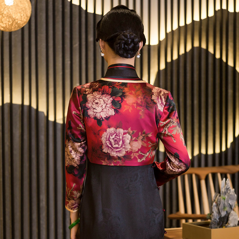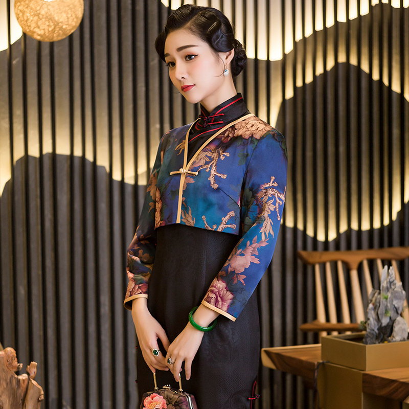 📚 华族经典改良中式复古短款长袖真丝搭配旗袍小外披小外套秋装新款