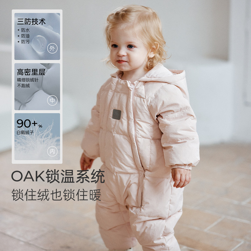 📚 OakFamily新生婴儿羽绒连体衣男女宝宝鹅绒外出服小月龄冬季爬服