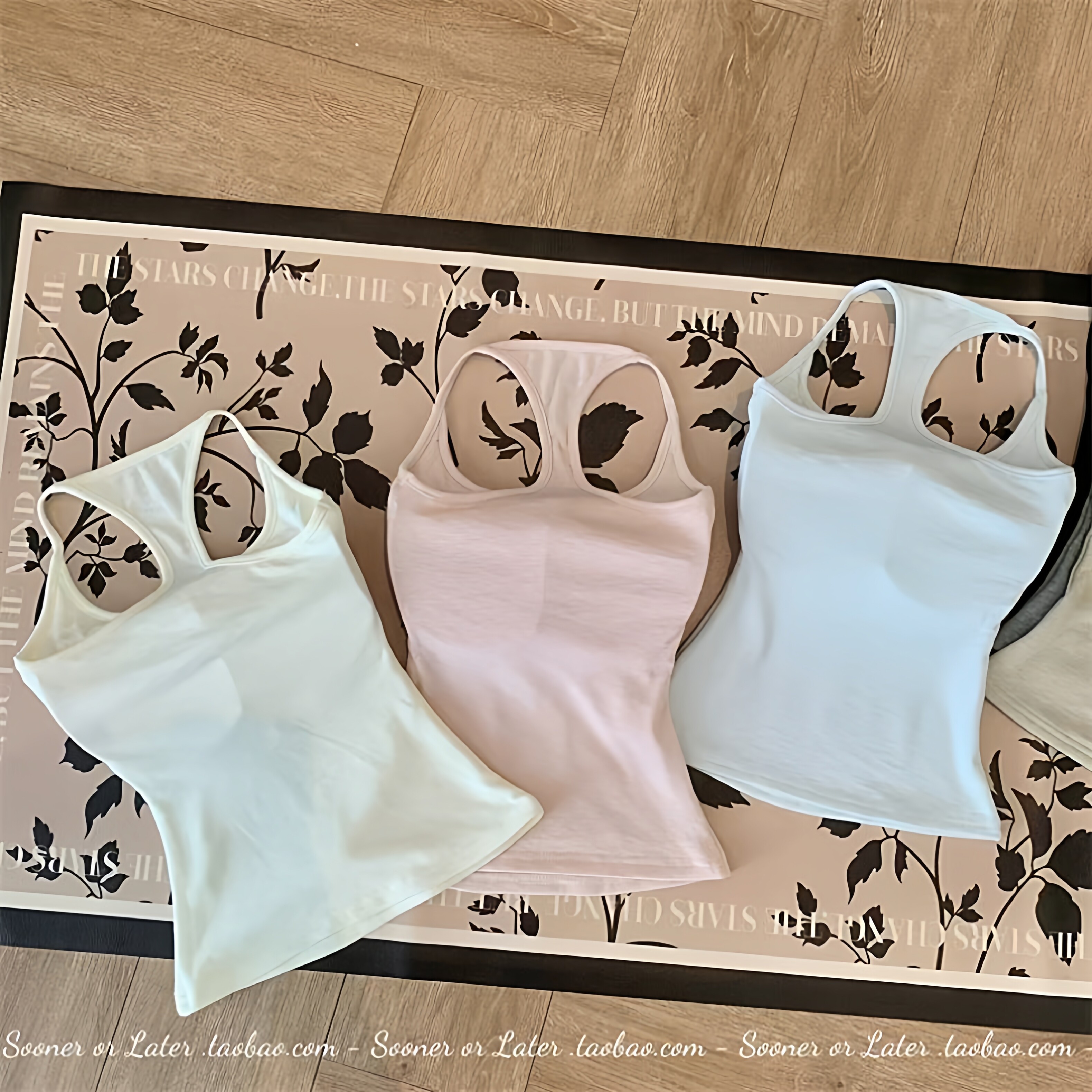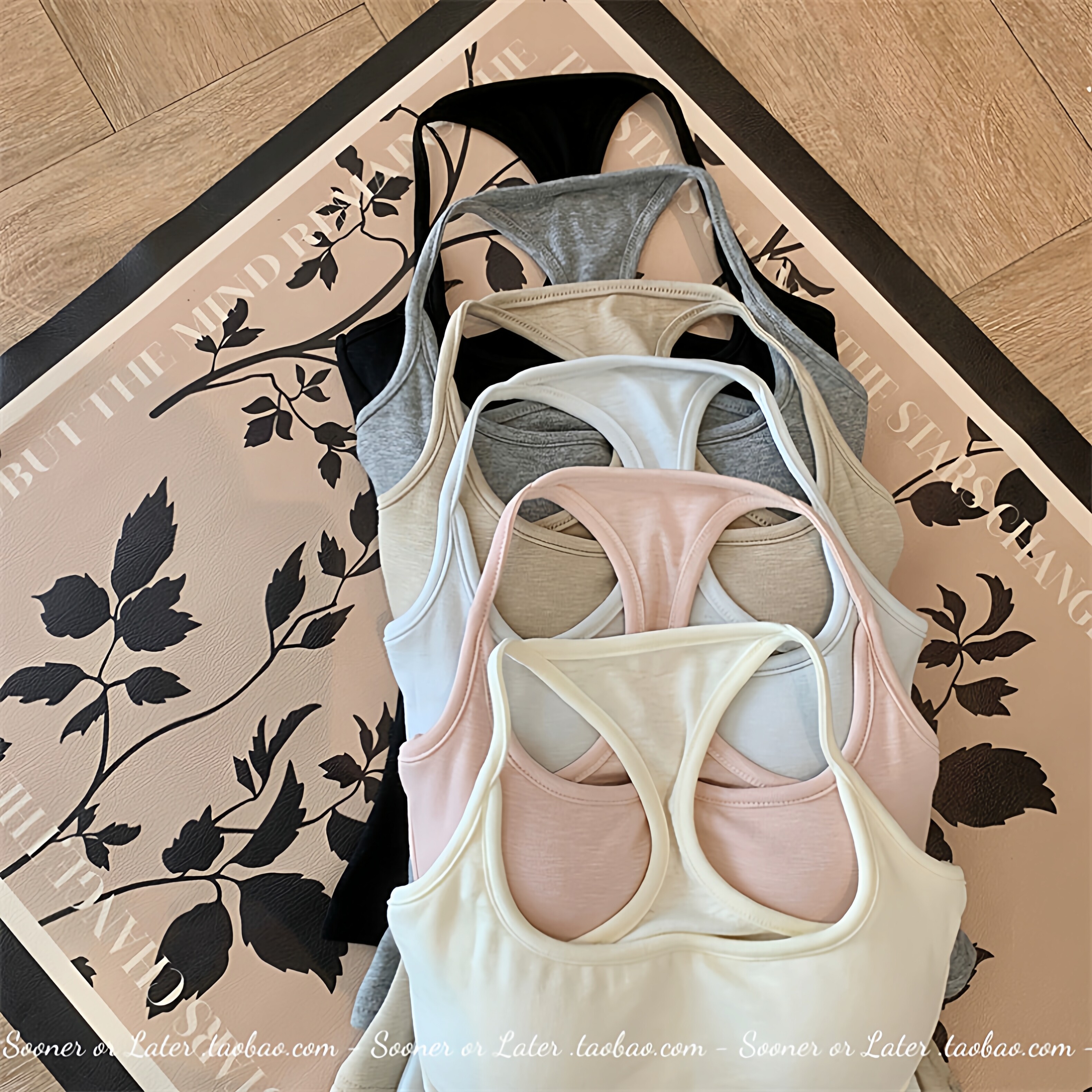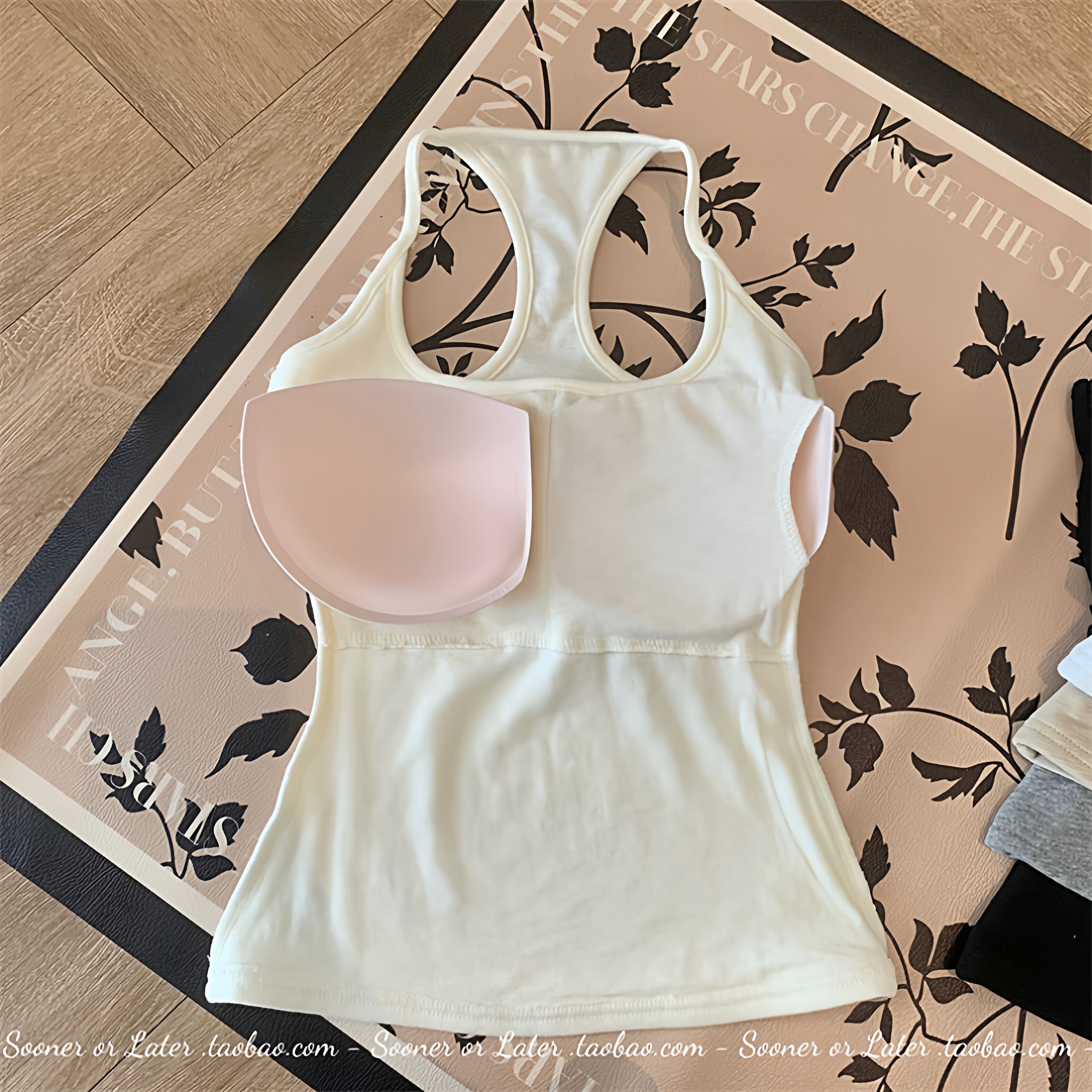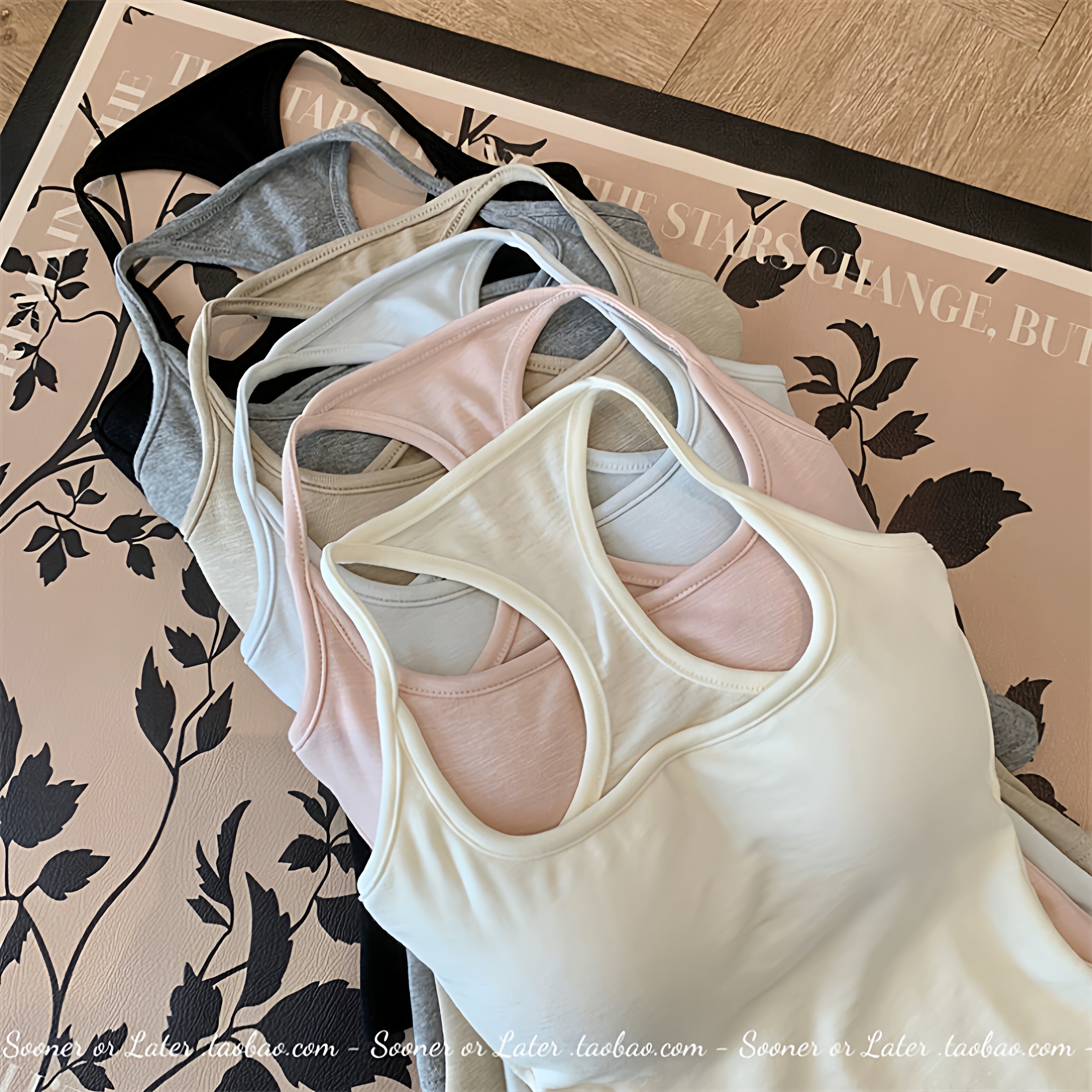 📚 纯色磨毛工字吊带背心女秋冬内搭带胸垫修身显瘦百搭无袖打底上衣