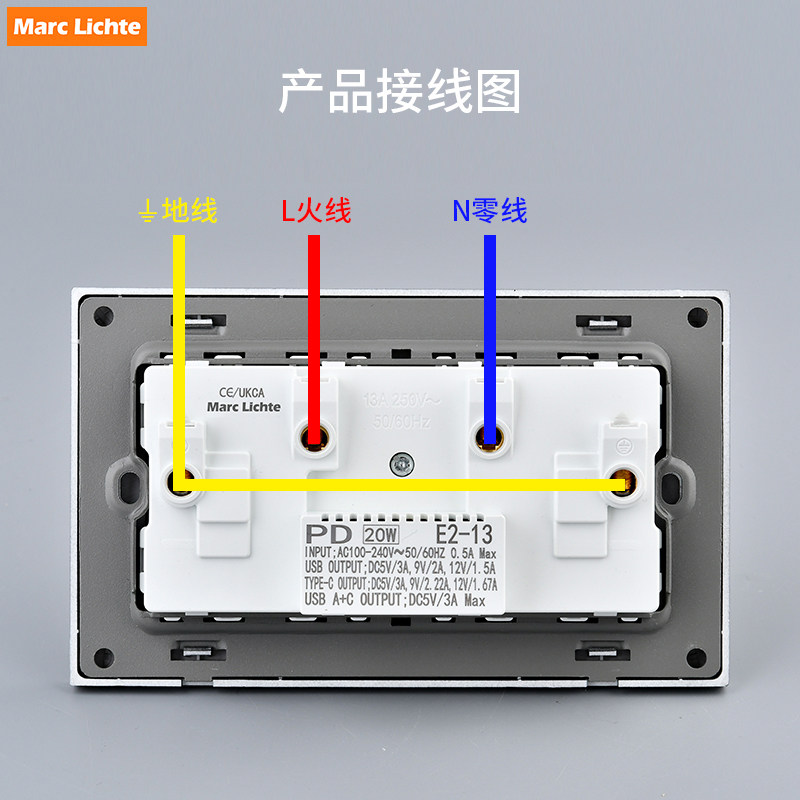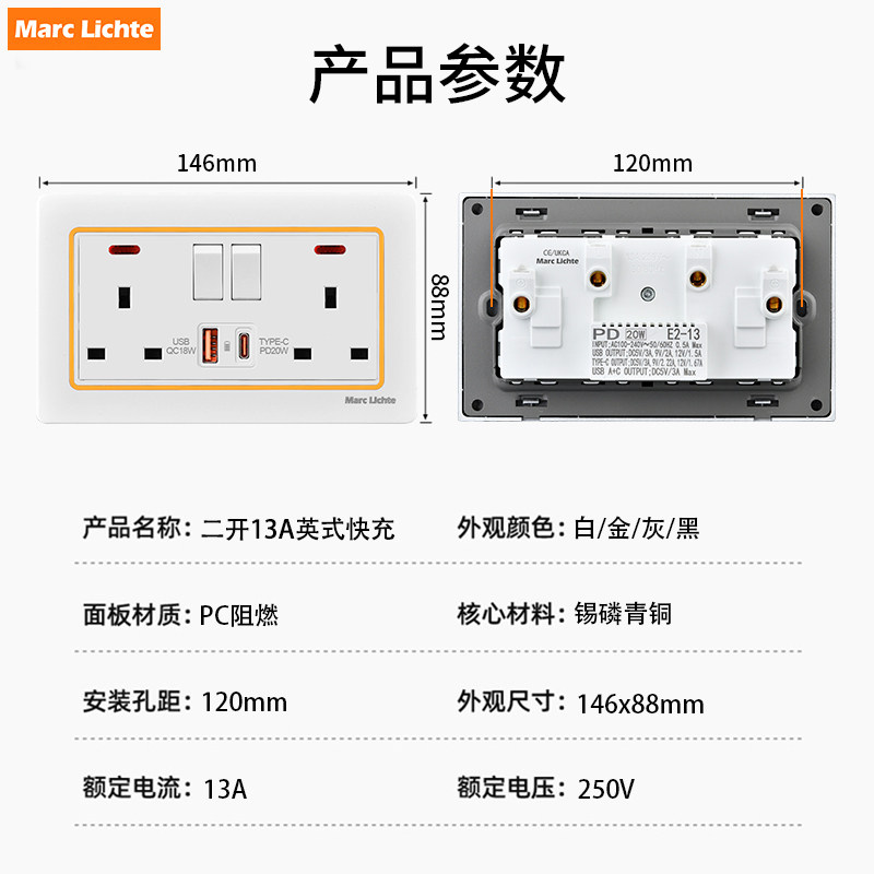 📚 86型英标13A方五孔插座墙壁暗装电源USB充电Type-C20W快充面板
