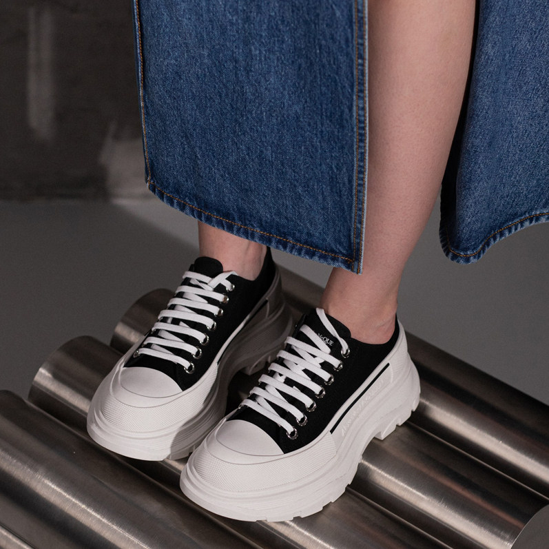 📚 【自营】ALEXANDER MCQUEENTread Slick帆布系带厚底休闲鞋女鞋