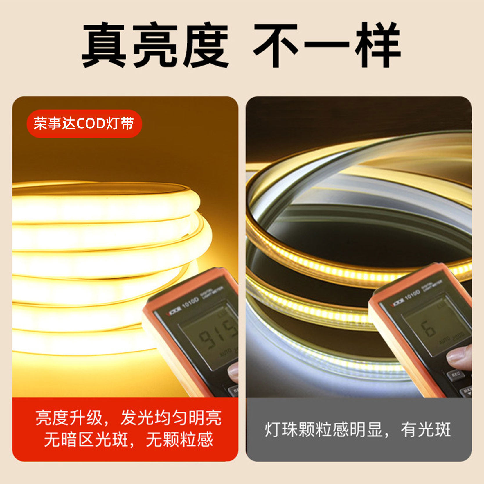 📚 荣事达cob灯带新型led灯条超亮220v户外防水家用自粘照明高压氛围