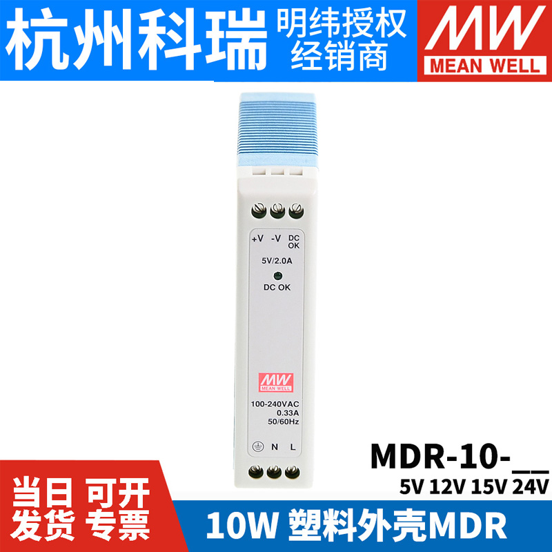 📚 明纬MDR-10-24/12导轨式10W开关电源5V12V15V24V小功率薄塑料外壳