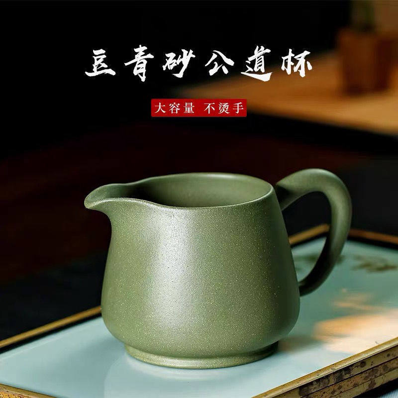 📚 280cc宜兴大容量公道杯紫砂茶海分茶器手工茶漏豆青砂公道杯配件