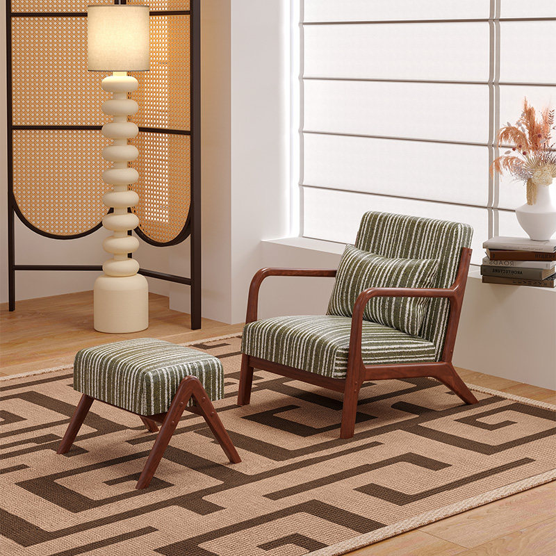 📚 家用单人沙发椅阳台休闲椅子美式复古单椅实木客厅单人椅懒人沙发