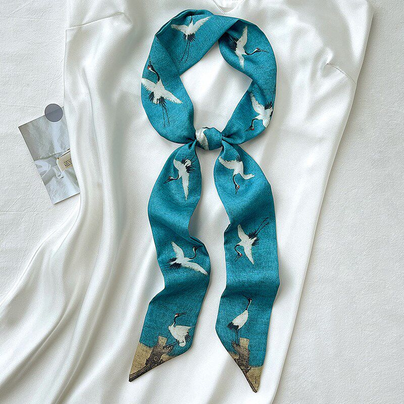 📚 新款千里江山图带长条小丝巾女春秋夏季丝带扎头发窄绑包装饰脖子