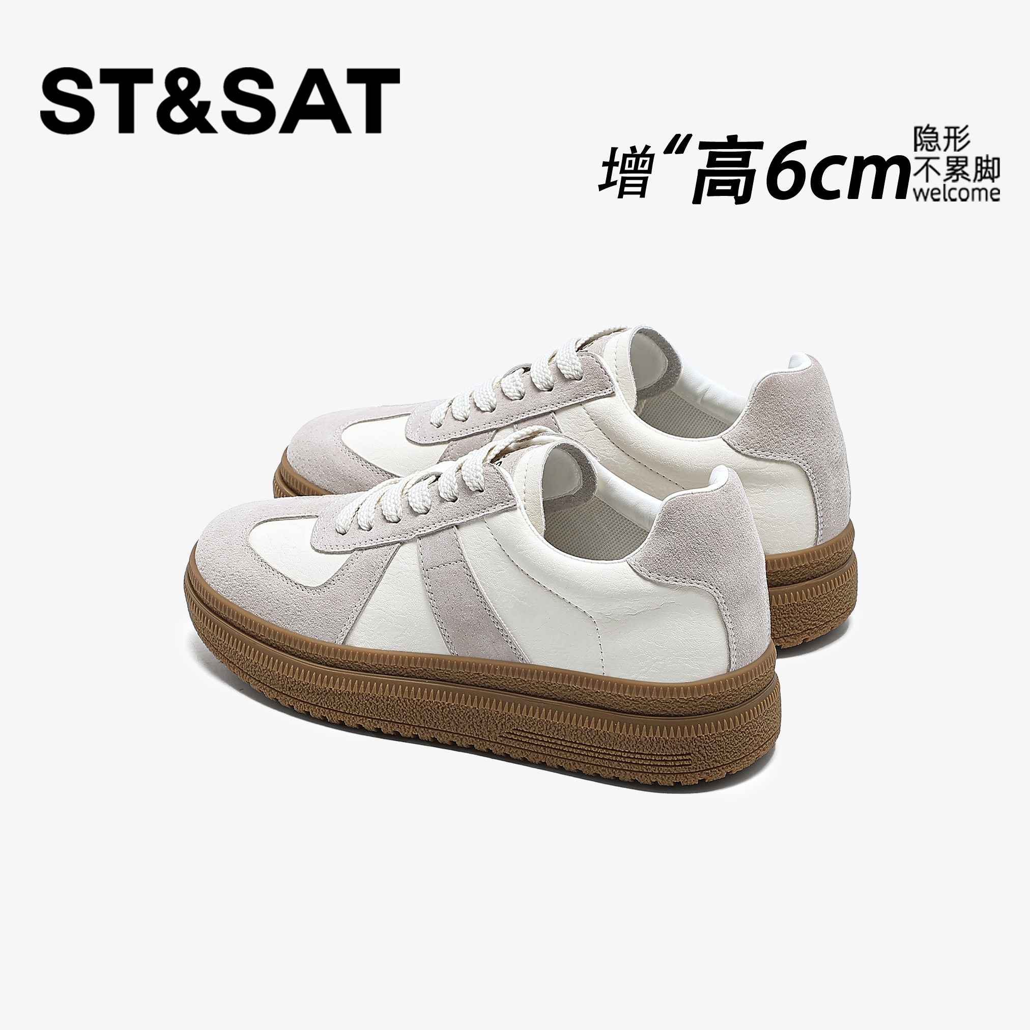📚 星期六隐形内增高女鞋6CM厚底德训鞋女百搭轻便休闲松糕阿甘板鞋